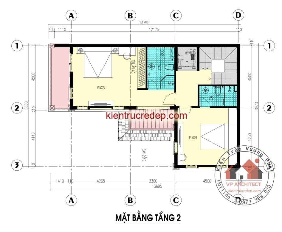 - Tầng 2 : 2 Phòng ngủ + 2 WC