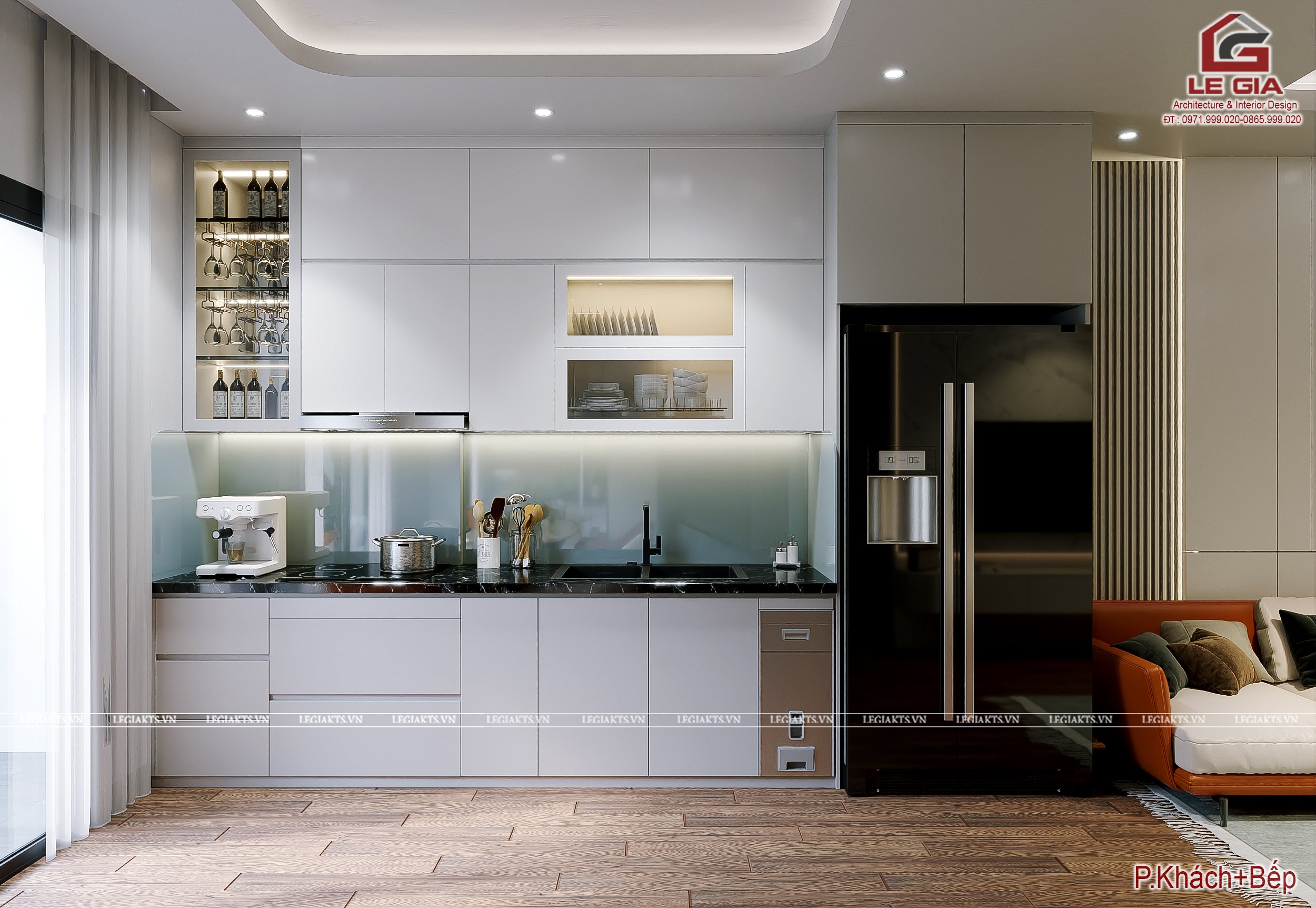 Phòng bếp: Tủ bếp kịch trần tăng khả năng lưu trữ đồ mang lại sự ngăn nắp và gọn gàng cho gian bếp. Tránh để trống phía trên dễ tích tụ bụi bẩn làm chúng ta phải thường xuyên dọn dẹp.