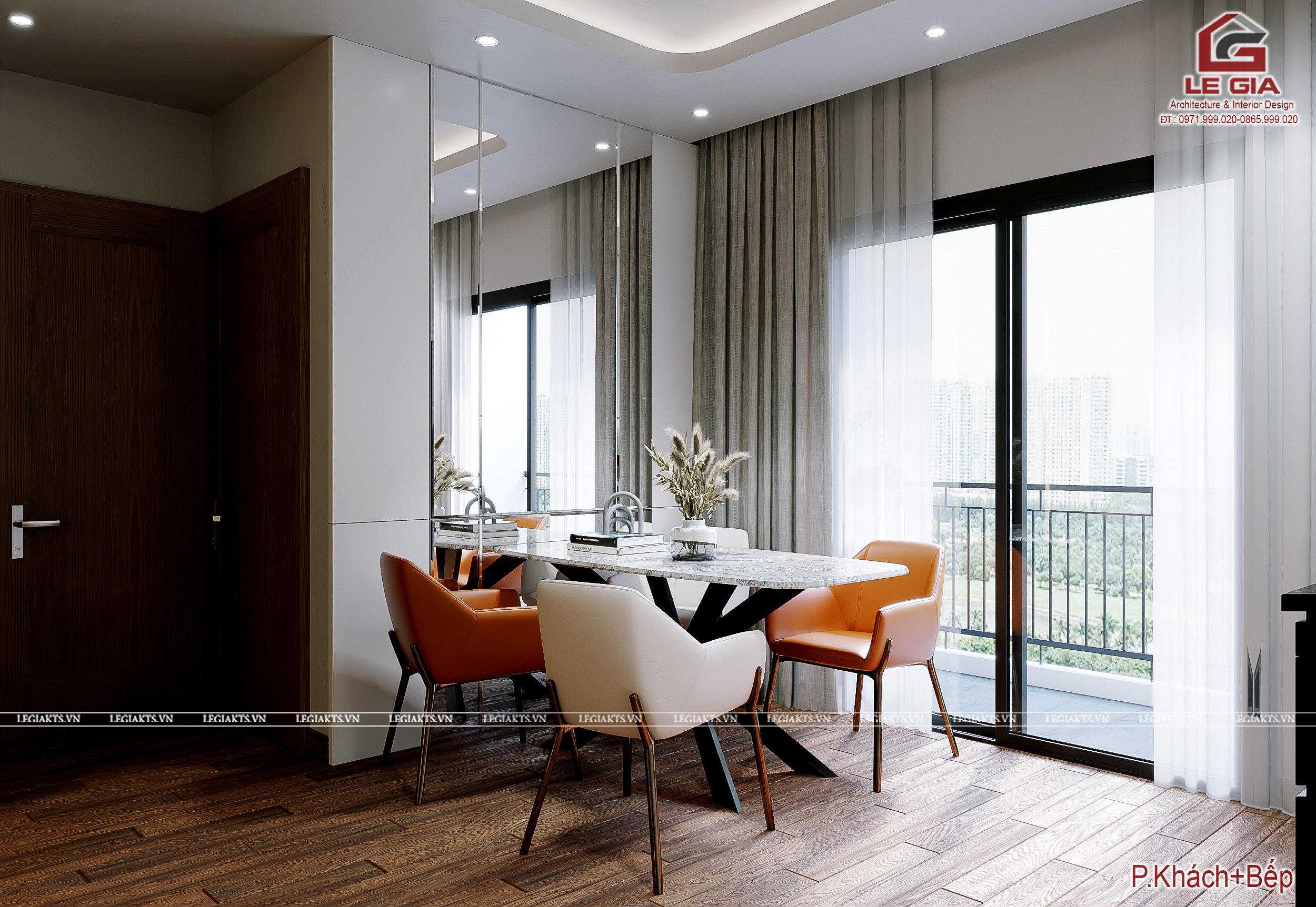 Khu vực bàn ăn: bàn ăn 4 ghế nhập khẩu kết hợp vách gương