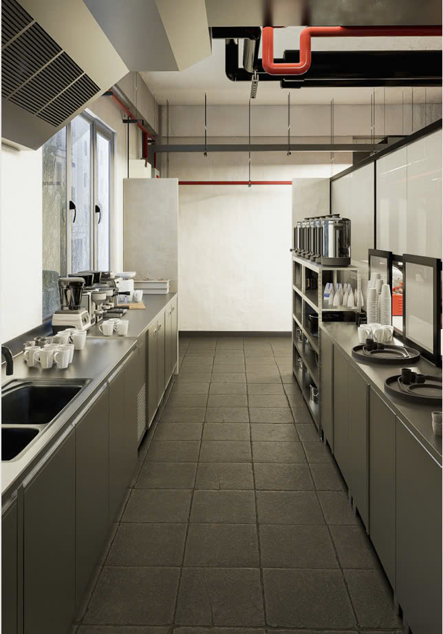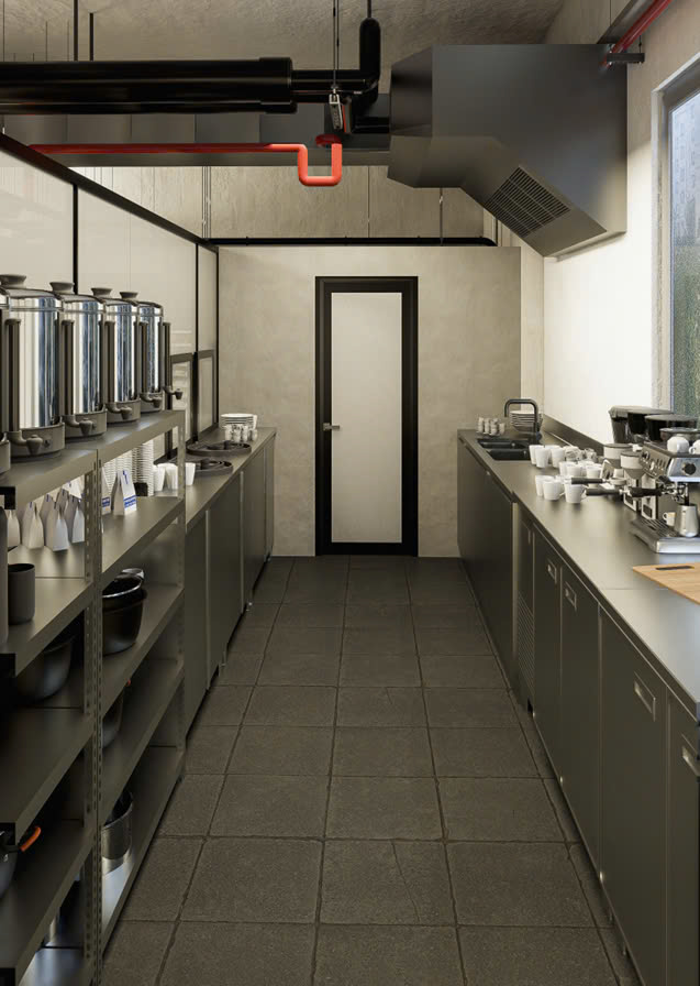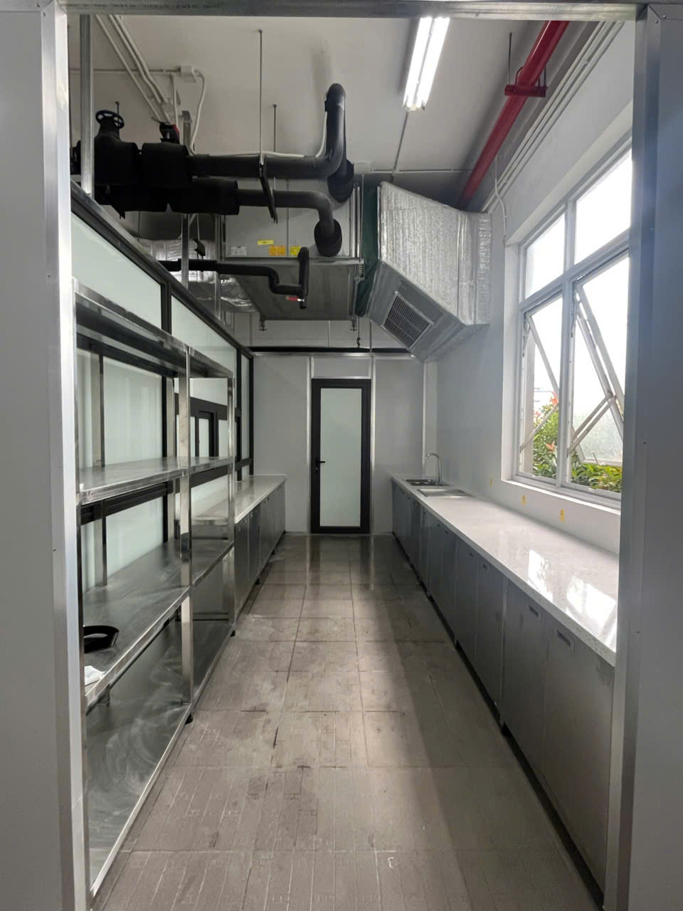 Do bán cho cán bộ công nhân viên nên rất đông và tập chung và 1 thời gian nhất định nên không tránh khỏi ẩm ướt. Do vậy toàn bộ bàn kệ ở khu vực này được làm bằng inox 304 đảm bảo về độ bền, vệ sinh, thẩm mỹ và an toàn