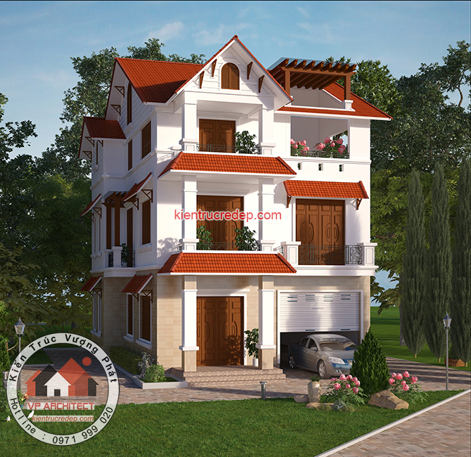 Thiết kế biệt thự cổ điển 3 tầng - Mái thái: