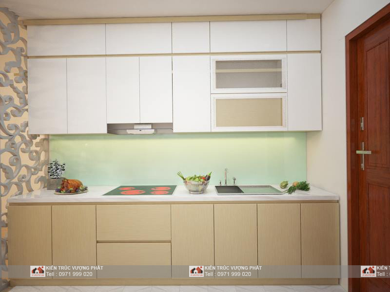 View phòng bếp : CHất liệu tủ Nhựn UPVc kết hợp gỗ MDF cốt xanh chống ẩm, đảm bảo độ bền của sản phẩm