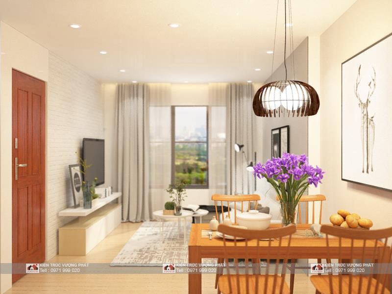 PHối cảnh phòng khách nhìn từ góc phòng ăn