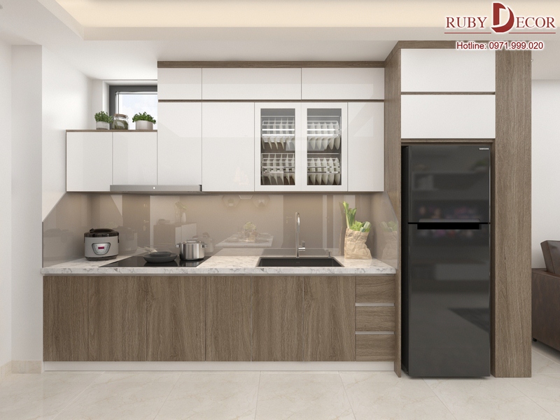 2. Phong cách nội thất : hiện đại, gỗ công nghiệp MDF phủ melamin kết hợp cánh Acrylic .