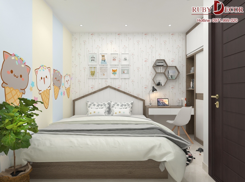 Phối cảnh phòng ngủ trẻ với đầy màu sắc sinh động của trẻ thơ: