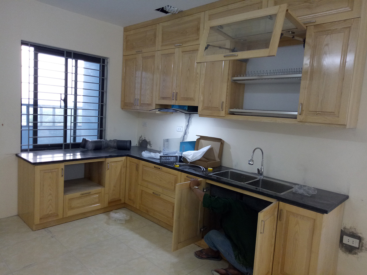 Thi công tủ bếp gỗ Sồi !