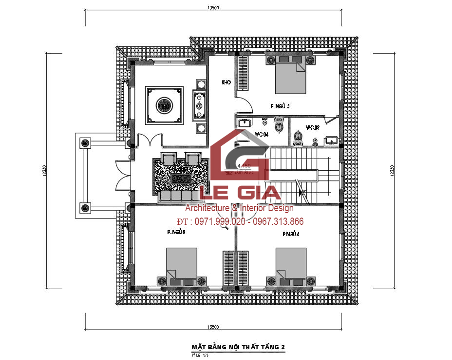 Tầng 2 : Phòng thờ , phòng sinh hoạt chung , 3 phòng ngủ