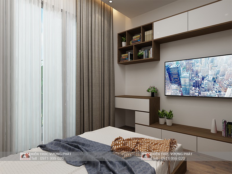 Công năng phòng thiết kế : 1 Phòng khách + 1 bếp ăn rộng, 1 Phòng ngủ Master, phòng ngủ các con