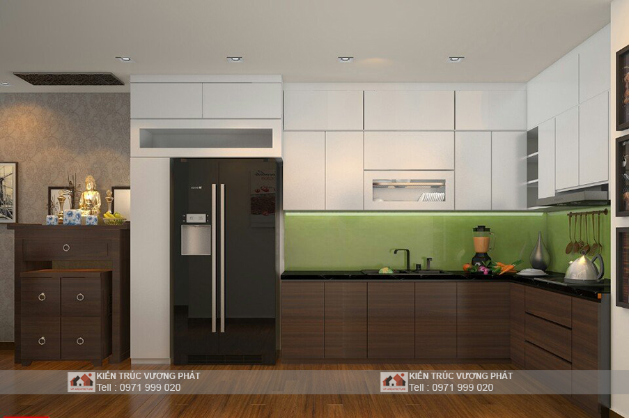 Kế tiếp và phòng ăn rộng với chất liệu nhựa UVPc bền đẹp, thiết kế anh sáng có điểm nhấn vào các hốc bếp tạo nên hình khi bếp đẹp , hiện đại!