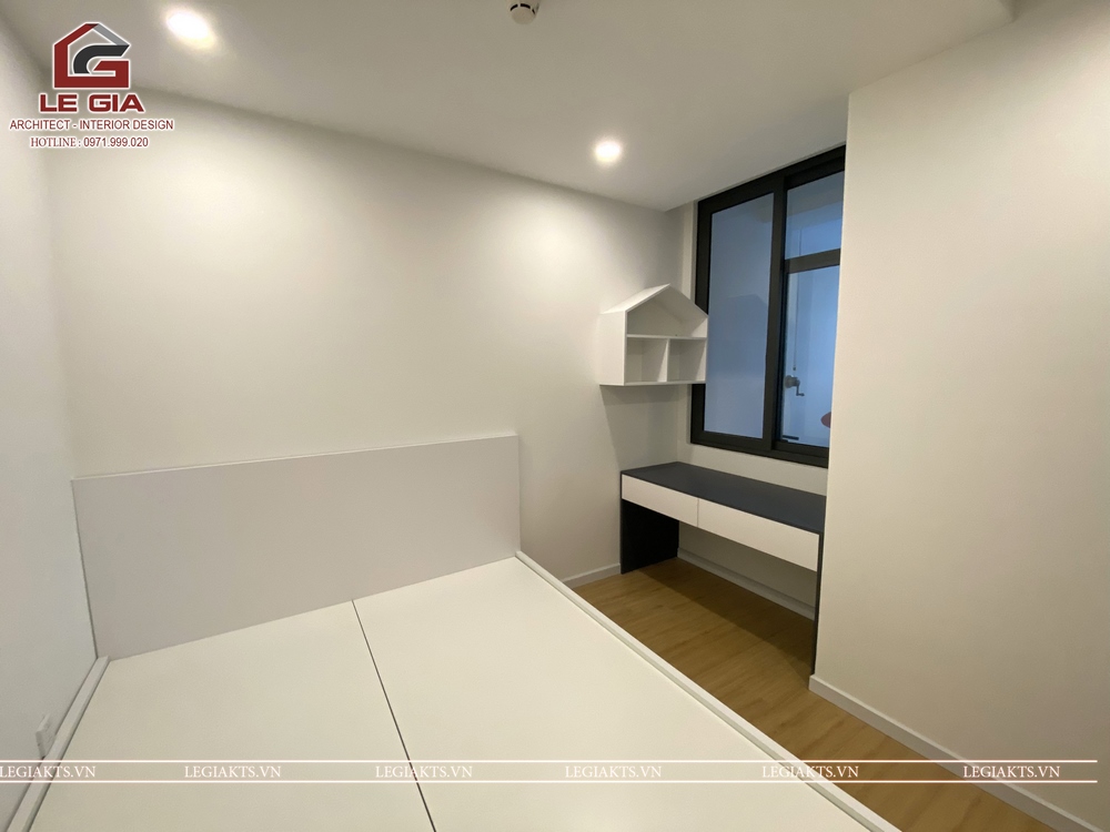 Phòng ngủ bé: gia chủ có 2 bé trai do vậy KTS Lê Gia đã thiết kế 2 bàn học và giá sách riêng biệt.